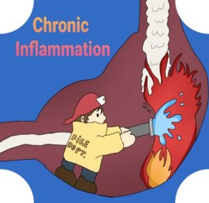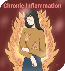 - Inflamasi kronis, jika inflamasi akut berlanjut lama, kondisi ini kelak dapat menginisiasi berbagai penyakit kronis.